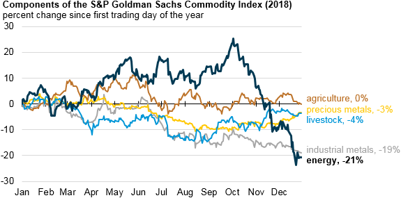«Η απότομη πτώση των τιμών του αργού και των προϊόντων πετρελαίου το δ΄ τρίμηνο του 2018 ήταν υπεύθυνη για τη γενικότερη πτώση του ενεργειακού δείκτη του S&P GSCI», ανέφερε η ανακοίνωση της EIA.