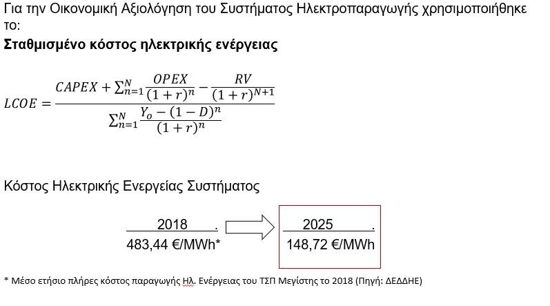 - Μέσα ετήσια κόστη ηλεκτροπαραγωγής της πενταετίας 2014 – 2018 να κυμαίνονται από 1.283,9 €/MWh (Αντικύθηρα) με 451.15 €/MWh (Μεγίστη) αντιστοίχως.