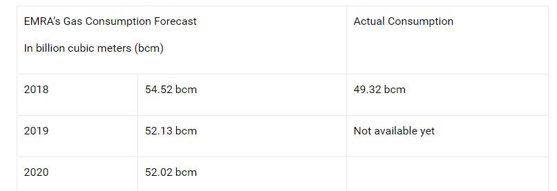 The country consumed around 49.32 bcm of natural gas in 2018, according to EMRA's 2018 Natural Gas Market Report, a rate below the 54.52 bcm forecast for that year. Turkey aims to decrease its dependence on imported products including oil and gas in energy supply, while increasing the share of local and renewable sources in its energy mix. With that aim, the country last year saw the share of local and renewable resources in electricity production amounted to 62%.