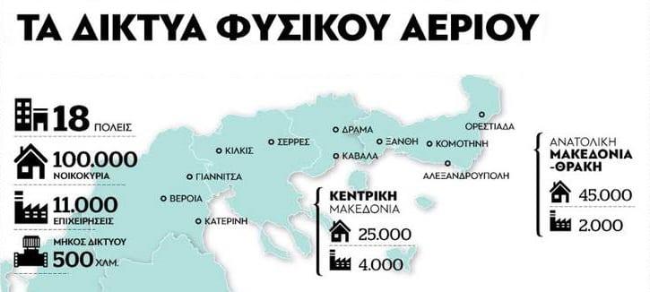 3. Κατασκευή τουλάχιστον 5.500 σημείων αεριοδότησης οικιακών και εμπορικών καταναλωτών.