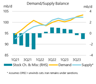 Ωστόσο, το εμπάργκο της ΕΕ στις εισαγωγές ρωσικού αργού και πετρελαϊκών προϊόντων, που τίθεται σε ισχύ τον Δεκέμβριο του 2022 και τον Φεβρουάριο του 2023 αντίστοιχα, αναμένεται να οδηγήσει σε μεγαλύτερες μειώσεις. Επίσης, πρόσθετες ποσότητες 1 εκατ. βαρελιών την ημέρα πετρελαϊκών προϊόντων και 1.4 εκατ. βαρελιών την ημέρα αργού θα πρέπει να βρουν νέους αγοραστές. Η συνολική ρωσική παραγωγή πετρελαίου προβλέπεται να μειωθεί στα 9.5 εκατ. βαρέλια την ημέραμέχρι τον Φεβρουάριο του 2023, μείωση 1.9 εκατ. βαρελιών την ημέρα σε σύγκριση με τον Φεβρουάριο του 2022.
