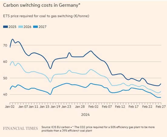 Εν τω μεταξύ, αρκετά από τα ελλείποντα CO₂ της Ευρώπης είναι κυκλικά και όχι διαρθρωτικά. Σχεδόν το ήμισυ των εκπομπών ETS προέρχεται από τον βιομηχανικό τομέα, ο οποίος έχει παραγκωνιστεί από τις υψηλές τιμές της ενέργειας. Καθώς η ευρωπαϊκή οικονομία ανακάμπτει, οι εκπομπές θα πρέπει να αρχίσουν να αυξάνονται και πάλι.