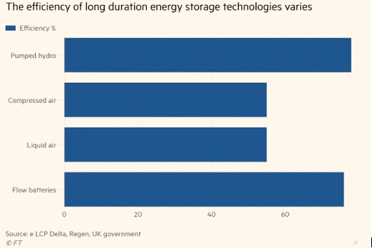 (Διαφορές στην απόδοση των τεχνολογιών αποθήκευσης ενέργειας μακράς διάρκειας-Πηγή: FT)