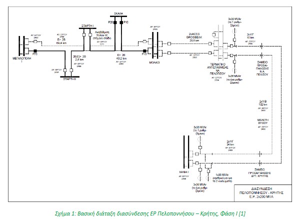 Φάση Ι: Διασύνδεση ΕΡ 150 kV Κρήτη - Πελοπόννησος