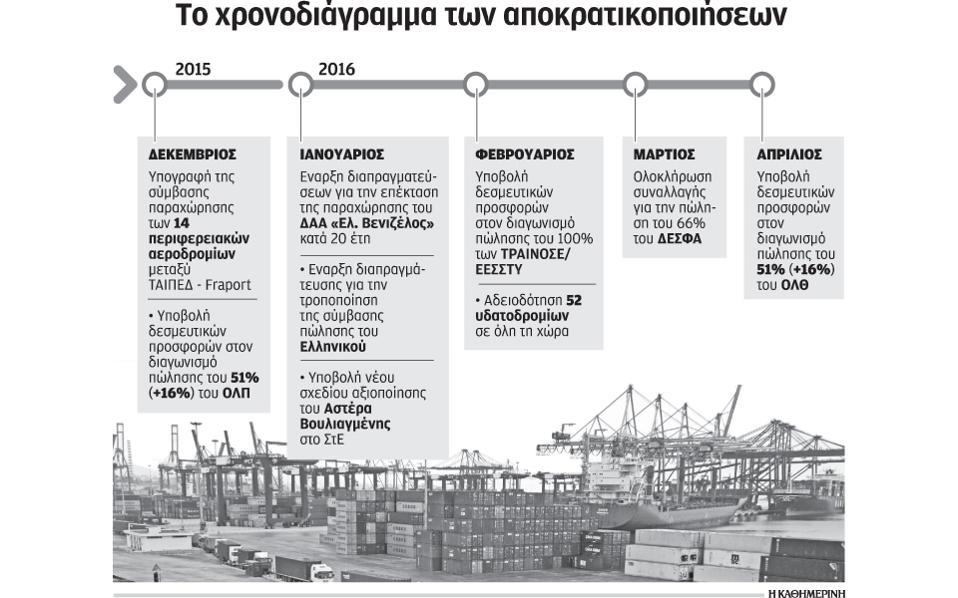 Δημοσίου (ΤΑΙΠΕΔ) για τις εννέα πρώτες αποκρατικοποιήσεις. Αλλεπάλληλες
