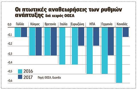 φέτος και 2,2% το 2017 (έναντι προηγούμενων εκτιμήσεων για 2,5% και 2,7% αντίστοιχα),