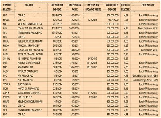 λίστα ελληνικών εταιρικών ομολόγων (εκ των οποίων αρκετών ενεργειακών