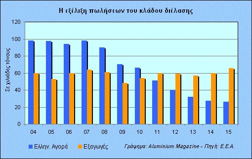 προϊόντων διέλασης το 2015 συγκριτικά με το 2014, σύμφωνα με στοιχεία που ανακοίνωσε η