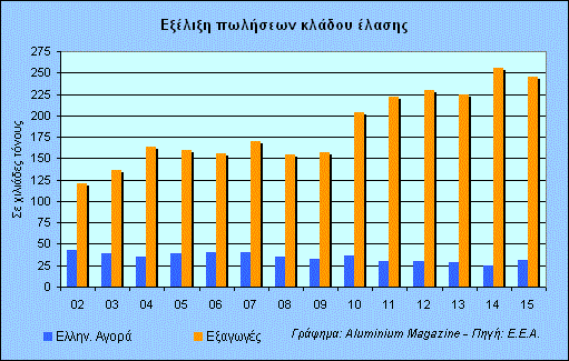 τo 2015 ελαφρά μείωση της τάξης του 1% περίπου. Η εγχώρια αγορά