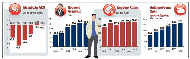 χρέος βρίσκεται σταθερά πάνω από 300 δισ. ευρώ, η ανεργία κινείται στα