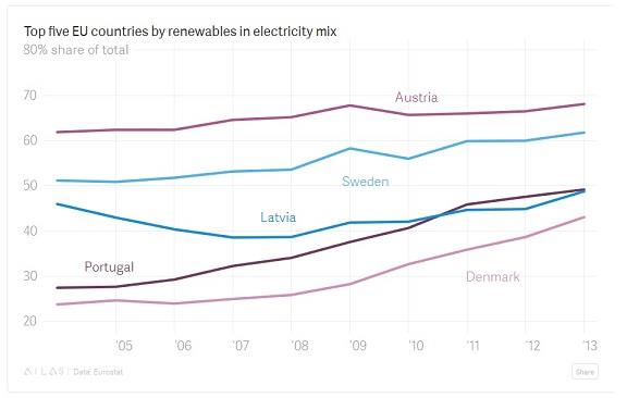 Αυστρίας, η Νορβηγία και η Ισλανδία με την άφθονη γεωθερμική ενέργεια .