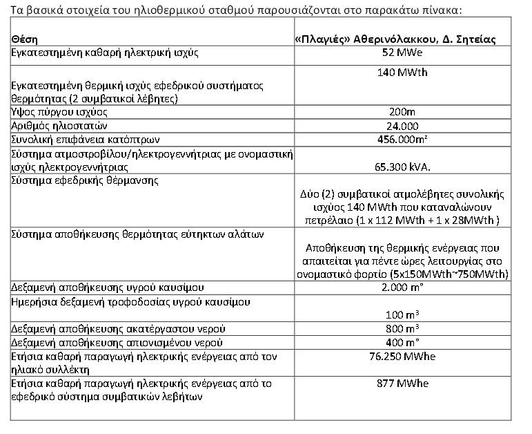Ο προτεινόμενος ηλιοθερμικός σταθμός θα