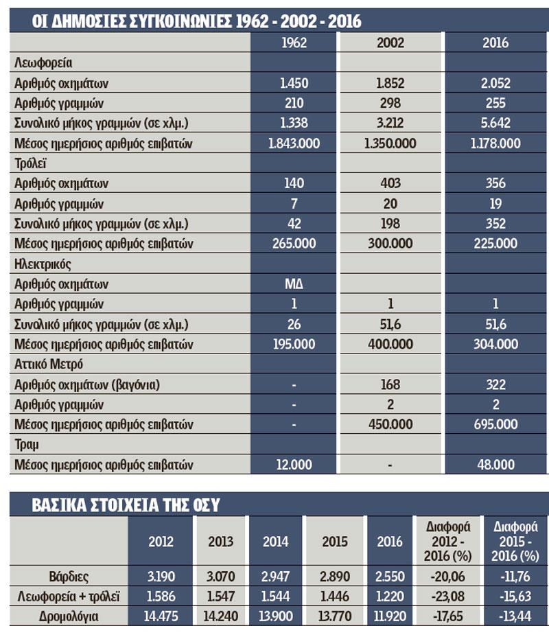 Ο μεγάλος «πληγωμένος» από το πέρασμα του χρόνου είναι η ΟΣΥ και κυρίως τα λεωφορεία που αποτελούσαν στη δεκαετία του ’60 και του ’70 το βασικό μέσο μεταφοράς των πολιτών της Αθήνας μετακινώντας καθημερινά πάνω από 1.843.000 επιβάτες! Αν και το 2002 είχε σημειωθεί αύξηση 22% στον αριθμό των λεωφορείων, 39% στον αριθμό των γραμμών που εξυπηρετούσαν την πρωτεύουσα και 232% στα οχηματοχιλιόμετρα που εξυπηρετούσαν την πρωτεύουσα και 232% στα οχηματοχιλιόμετρα που