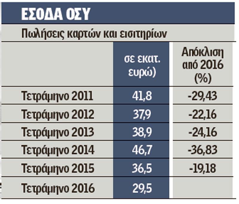 απώλειες από τις εισπράξεις σε εισιτήρια και κάρτες.