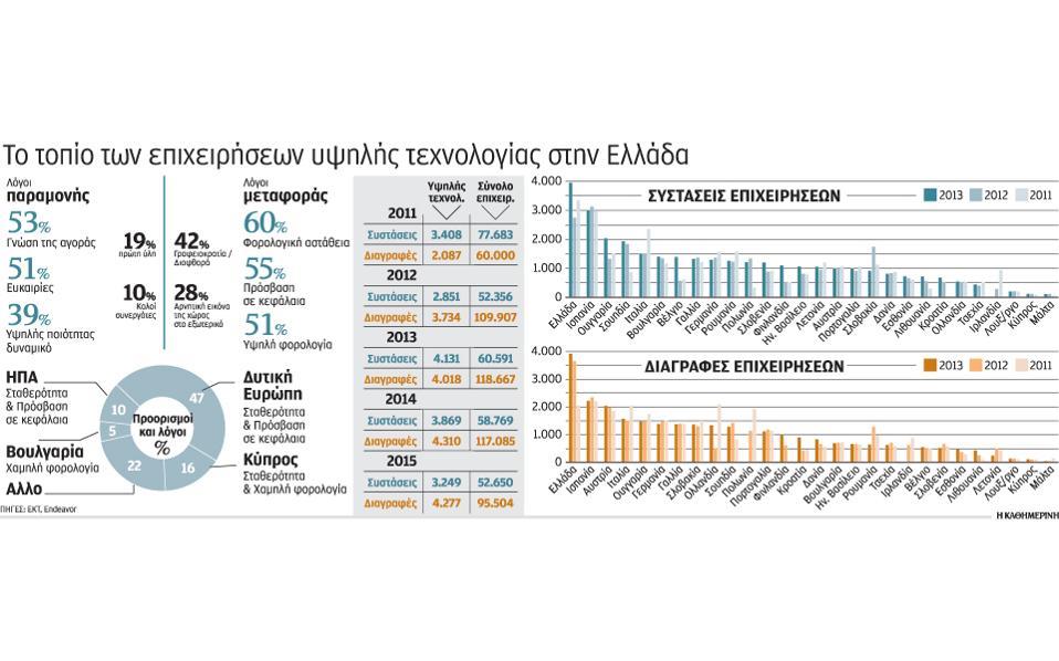επιχειρήσεις υψηλής τεχνολογίας από όσες άρχισαν να λειτουργούν. Το 2014