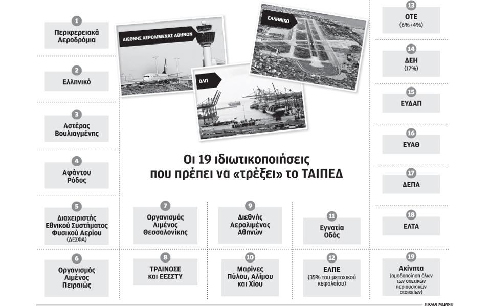 αξιοποιήσεις του 17% της ΔΕΗ, του 65% της ΔΕΠΑ, του 35% των ΕΛΠΕ, της