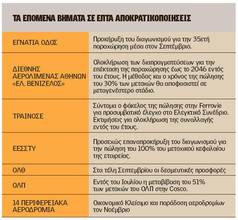 τις αποκρατικοποίησεις, δηλαδή των 2 δισ. ευρώ για φέτος και 6 δισ. ευρώ