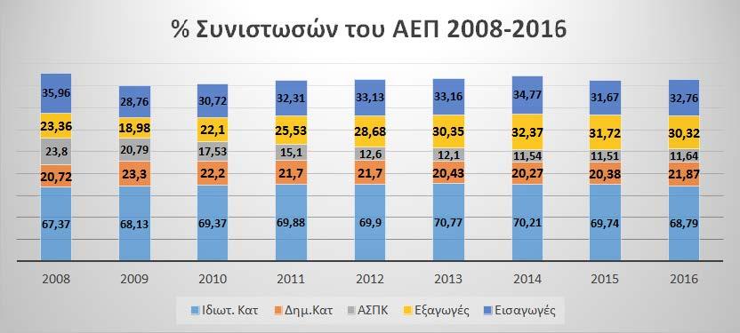 συνιστωσών του ελληνικού ΑΕΠ την περίοδο 2008-2016.