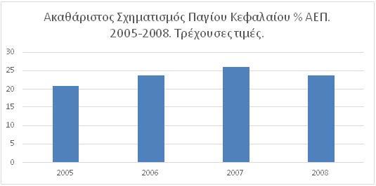χρηματοπιστωτική, 2005- 2008, υπερέβαινε το 20,0% του ΑΕΠ (Γραφική παράσταση