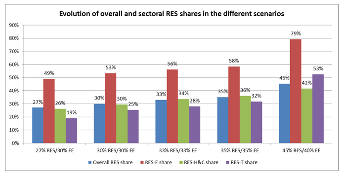 επίτευξη στόχου 27% για τις ανανεώσιμες πηγές ενέργειας έως το 2030 (σε
