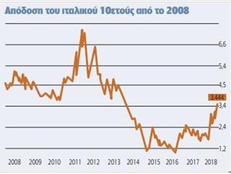 Το spread (διαφορά απόδοσης) ιταλικών - ισπανικών ομολόγων έχει εκτιναχθεί στα υψηλότερα επίπεδα των τελευταίων 20 ετών. H απόδοση του ιταλικού 10ετούς εκτινάχθηκε την περασμένη εβδομάδα έως και το 3,81% και σταθεροποιήθηκε τελικά κοντά στο 3,5%, εν μέσω προσδοκιών ότι η Ρώμη θα βάλει νερό στο κρασί της, μετά την αυστηρή επιστολή της Κομισιόν, αλλά και υπό την πίεση των οίκων αξιολόγησης, που την οδηγούν κοντά στην κατηγορία των «σκουπιδιών». Η απόδοση του ισπανικού δεκαετούς ανέβηκε έως και το 1,82% και έχει σταθεροποιηθεί κοντά στο 1,7%, ενώ του πορτογαλικού είναι κοντά στο 2%. Να σημειωθεί δε πως όταν ξέσπασε και όταν κορυφώθηκε η ευρωπαϊκή κρίση χρέους το κόστος δανεισμού της Ιταλίας ήταν ελαφρώς χαμηλότερο από της Ισπανίας και κατά πολύ χαμηλότερο από εκείνο της Πορτογαλίας. Ο μεγάλος του Νότου απέφυγε το μνημόνιο, αλλά έμεινε ο μεγάλος ασθενής.
