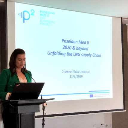 Από την πλευρά του, ο Γιώργος Πολυχρονίου, συντονιστής διευθυντής Δραστηριοτήτων Στρατηγικής, Ανάπτυξης, Διοικητικών & Πληροφορικής της ΔΕΠΑ, ανακοίνωσε το πρόγραμμα BlueHUBS, το οποίο εφαρμόζει στην πράξη τα πορίσματα του Poseidon Med II, με την ανάπτυξη υποδομών ανεφοδιασμού πλοίων με LNG στα λιμάνια που περικλείονται στο τρίγωνο Πειραιάς, Λεμεσός, Ηράκλειο.