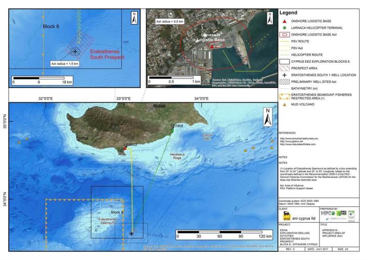 Για το ίδιο σημείο σε απόρρητη έκθεσή της, η ΕΝΙ ανέφερε ότι «λαμβάνει υπόψη την περιβαλλοντική κατάσταση στην περιοχή, αποφεύγοντας πιθανή παρουσία ευαίσθητων βενθικών οικοσυστημάτων και χημοσυνθετικών κοινοτήτων, αρχαιολογικών ευρημάτων και ναυαγίων».