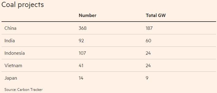 Αλλά η Κίνα είναι ένας άλλος κόσμος. Σήμερα, διαθέτει, ακόμη, σχέδια που προβλέπουν επιπλέον 187 GW χωρητικότητας άνθρακα στα ήδη εν λειτουργία άνω των 1.000 GW! Ακολουθεί η Ινδία με σχέδια για να προσθέσει άλλα 60 GW, στα ήδη υφιστάμενα έργα ισχύος 248 GW. Είναι χαρακτηριστικό ότι η Ινδονησία, το Βιετνάμ και η Ιαπωνία αποτελούν τις υπόλοιπες από τις συνολικά, πέντε χώρες της Ασίας που προγραμματίζουν να θέσουν σε λειτουργία το 80% των νέων σταθμών άνθρακα σε παγκόσμια κλίμακα. Πρόκειται ακριβώς για αυτές τις 620 νέες μονάδες, συνολικής χωρητικότητας ισχύος άνω των 300 GW που προαναφέραμε. Η έρευνα διαπιστώνει ότι η πλειοψηφία των μονάδων ηλεκτροπαραγωγής με άνθρακα ανά τον κόσμο, θα μπορούσε να αντικατασταθεί από Ανανεώσιμες Πηγές Ενέργειας με άμεση εξοικονόμηση κόστους.