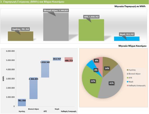 Να σημειωθεί ότι οι εισαγωγές για τον μήνα Ιούλιο ήσαν μειωμένες σε σύγκριση με την εικόνα που προκύπτει για το Α εξάμηνο όπου εμφανίζονται να αναλογούν στο 14% της συνολικής παραγωγής. Με την ευρεία χρήση εισαγωγών ηλεκτρισμού και φυσικού αερίου να είναι ενδεικτική της πολύ υψηλής ενεργειακής εξάρτησης της χώρας, η οποία συνολικά κινείται σε επίπεδα άνω του 80% (στοιχεία Eurostat 2020)