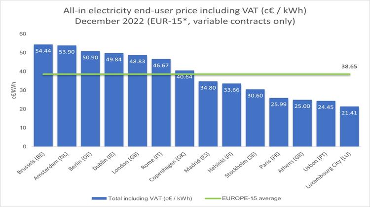 χώρες με ώριμες αγορές ενέργειας όπως η Ισπανία (34,8 λεπτά), η Ιταλία (46,6 λεπτά), η Βρετανία (48,8 λεπτά), η Γερμανία (50,9 λεπτά) κλπ.