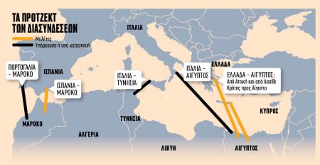 Η Ελλάδα, μέσω τριών έργων, επιδιώκει να παίξει πρωταγωνιστικό ρόλο. Ηδη σχεδιάζονται δύο ηλεκτρικά καλώδια για τη σύνδεση της Ελλάδας με την Αίγυπτο, εκ των οποίων το έργο «GREGY», που σχεδίασε και αναπτύσσει η εταιρεία ELICA, έχει εξασφαλίσει τη στήριξη των κυβερνήσεων των δύο χωρών και έχει ήδη λάβει «Letters of Support» από το υπουργείο Περιβάλλοντος και Ενέργειας, τον ΑΔΜΗΕ και τη Ρυθμιστική Αρχή Ενέργειας (ΡΑΕ) που θα ενισχύσουν τον φάκελο για την ένταξη του έργου στον κατάλογο έργων κοινού ενδιαφέροντος (PCI) της ΕΕ. Θα ακολουθήσει η μελέτη σκοπιμότητας σύμφωνα με τους ευρωπαϊκούς κανόνες ώστε να εξασφαλιστούν οι όροι για την κοινοτική χρηματοδότηση του έργου.