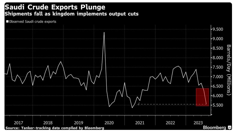 Ο Οργανισμός Πετρελαιοεξαγωγικών Χωρών και οι σύμμαχοί του, συμπεριλαμβανομένης της Ρωσίας, περιορίζουν την προσφορά προκειμένου να στηρίξουν την αγορά, ιδιαίτερα εν μέσω ενδείξεων ανεπαρκούς ζήτησης στην Κίνα, τον μεγαλύτερο καταναλωτή πετρελαίου στον κόσμο. Από τον Ιούλιο, η Σαουδική Αραβία έχει δεσμευτεί να εφαρμόσει μονομερή μείωση της παραγωγής κατά 1 εκατομμύριο βαρέλια την ημέρα πέραν των υφιστάμενων περιορισμών. Οι Σαουδάραβες αξιωματούχοι δεν απάντησαν αμέσως σε αίτημα του Bloomberg για σχόλιασμό σχετικά με τις εξαγωγές πετρελαίου του Αυγούστου, καθώς η Παρασκευή είναι εβδομαδιαία αργία στη χώρα.
