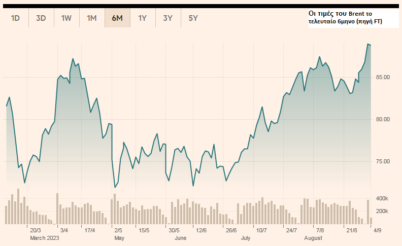 Αναλυτικότερα, τα συμβόλαια μελλοντικής εκπλήρωσης του αργού Brent για τον Νοέμβριο αυξήθηκαν κατά 5 σεντς, φτάνοντας στα 88,60 δολάρια το βαρέλι στις 11:10 ώρα Γκρήνουιτς (13:10 ώρα Ελλάδος). Τα συμβόλαια του αμερικανικού αργού WTI Οκτωβρίου αυξήθηκαν 2 σεντς, φτάνοντας τα 85,57 δολάρια το βαρέλι. Και τα δύο συμβόλαια διαπραγματεύονταν στο τέλος της περασμένης εβδομάδας στο υψηλότερα επίπεδα εδώ και πάνω από ένα εξάμηνο και ενώ είχαν προηγηθεί δύο εβδομάδες με ζημίες.