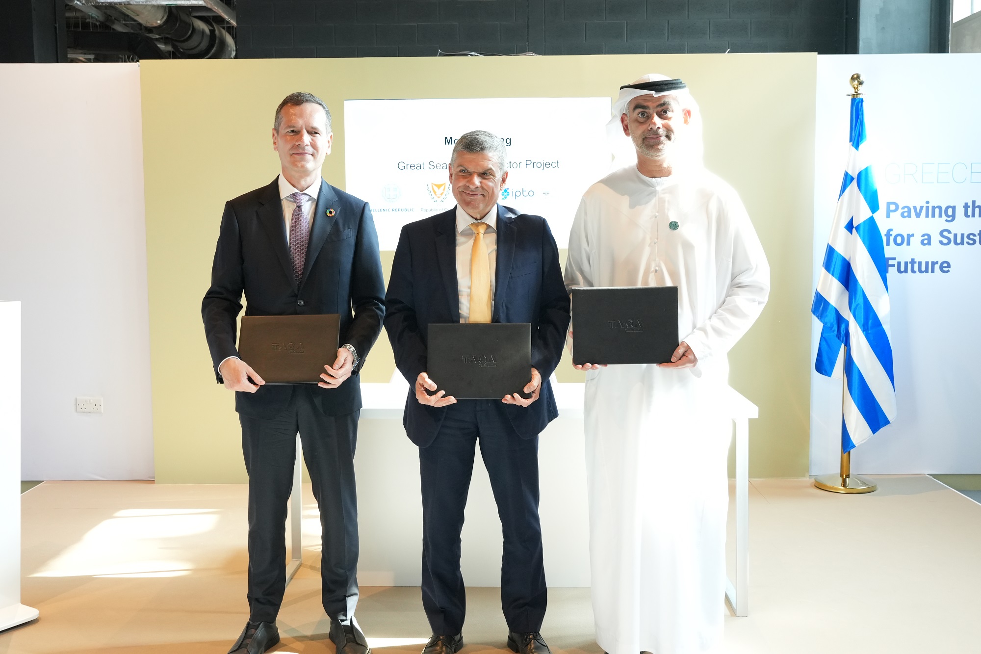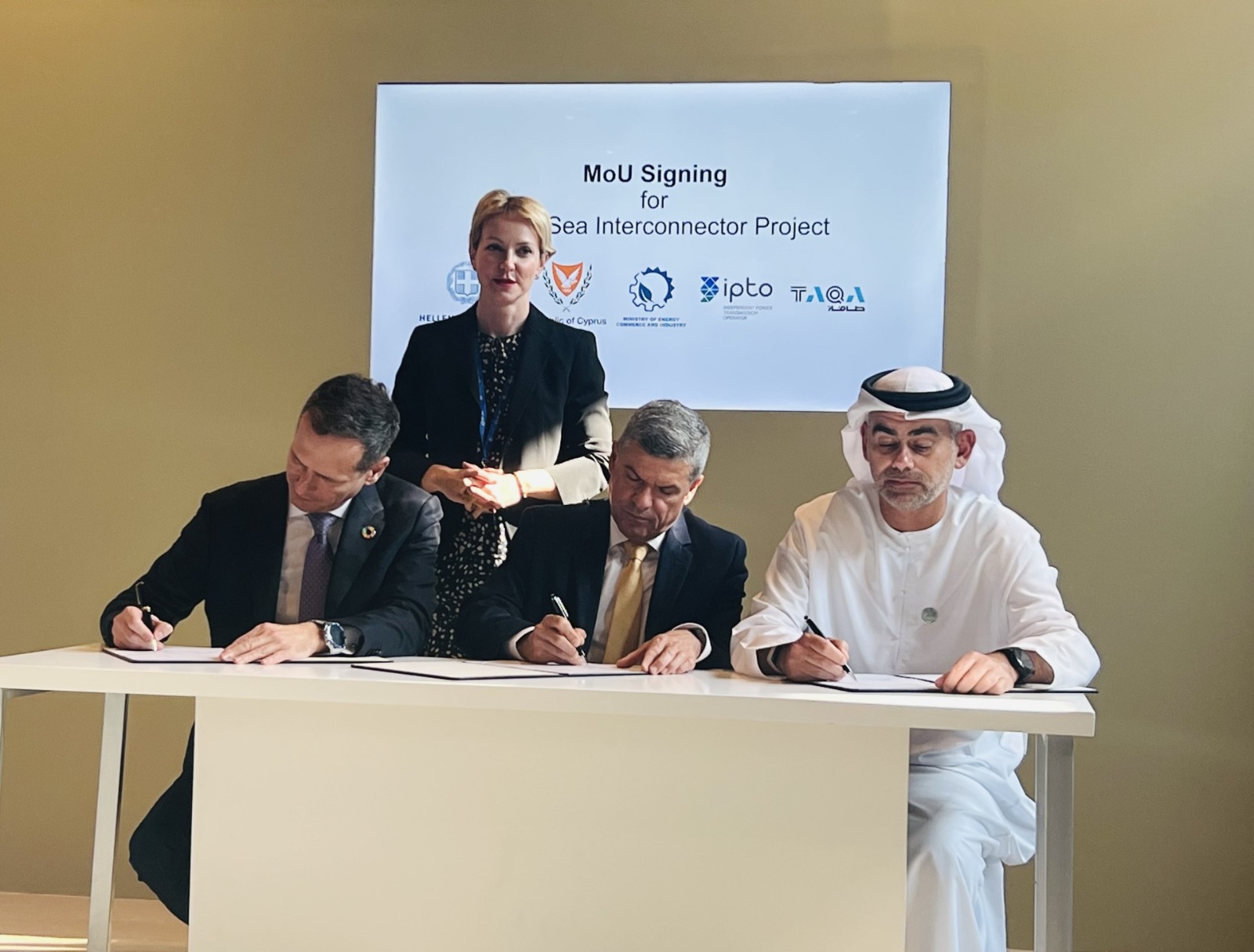 Τη συμφωνία υπέγραψαν ο Υπουργός Ενέργειας, Εμπορίου και Βιομηχανίας της Κύπρου, κ. Γιώργος Παπαναστασίου, ο Πρόεδρος και Διευθύνων Σύμβουλος του ΑΔΜΗΕ, κ. Μάνος Μανουσάκης και ο Διευθύνων Σύμβουλος του Ομίλου TAQA, κ. Jasim Husain Thabet, παρουσία της Υφυπουργού Περιβάλλοντος και Ενέργειας της Ελλάδας, κυρίας Αλεξάνδρας Σδούκου.