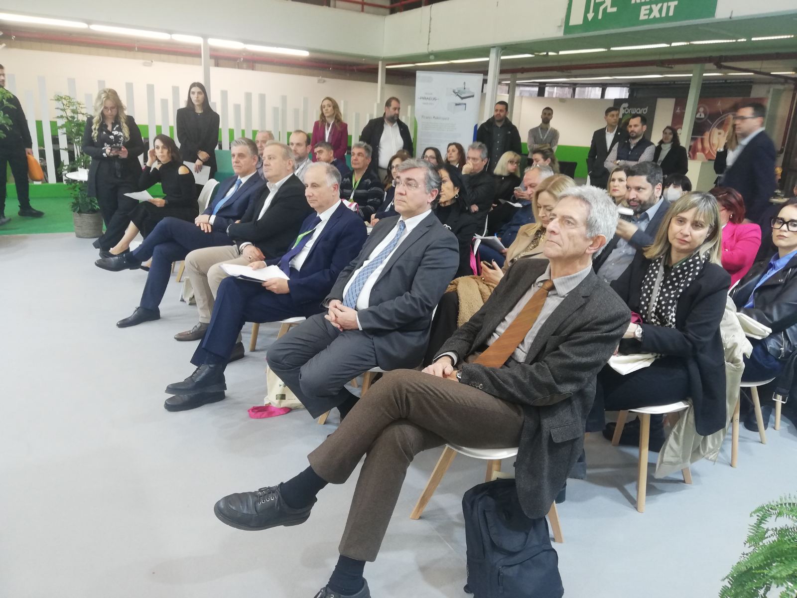 Ο Γενικός Γραμματέας, που τοποθετήθηκε συνολικά σε 10 εκδηλώσεις στο πλαίσιο της έκθεσης, στο σύντομο χαιρετισμό του αναφέρθηκε στην πρόοδο που έχει συντελεστεί στη χώρα τα προηγούμενα 4,5 χρόνια στους τομείς της διαχείρισης αποβλήτων και της μετάβασης στην πράσινη ανάπτυξη. Επισήμανε τη σημαντική εξέλιξη των έργων διαχείρισης αποβλήτων και λυμάτων, στη διαδικασία ενεργειακής αξιοποίησης από τα υπολείμματα των αποβλήτων, καθώς και στα διαρκώς αυξανόμενα ποσοστά των ΑΠΕ στο ενεργειακό μείγμα της χώρας.