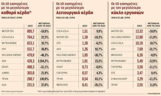 Στον πίνακα: Οι επιδόσεις των ελληνικών επιχειρήσεων για το 2023. Πηγή: Η Καθημερινή.
