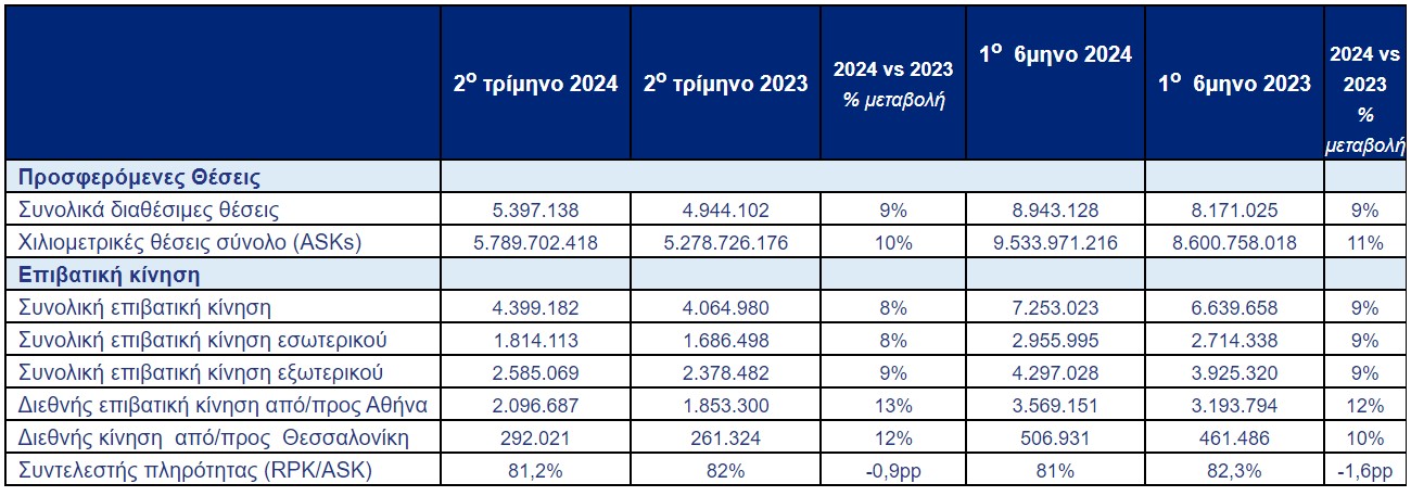 Πιο συγκεκριμένα, η αύξηση της επιβατικής κίνησης στο δίκτυο εξωτερικού από και προς τον κόμβο της Αθήνας κατέγραψε αύξηση 13%, επιβεβαιώνοντας την επιλογή της εταιρείας να επενδύσει περαιτέρω με αύξηση συχνοτήτων από και προς τα μεγάλα ευρωπαϊκά hubs, αλλά και τις αγορές της Γερμανίας, της Αγγλίας, της Κύπρου, της Τουρκίας και των χωρών του Κόλπου και της Βαλτικής. Αντίστοιχη ήταν και η αύξηση της επιβατικής κίνησης από και προς τη Θεσσαλονίκη (+12% το 2ο τρίμηνο) που έχει διακινήσει ήδη κατά το πρώτο 6μηνο του έτους περισσότερους από 500,000 επιβάτες εξωτερικού, παγιώνοντας σταδιακά τη θέση της ως ένα προορισμό με δραστηριότητα όλο το χρόνο.