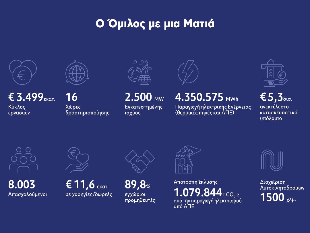 Αξίζει να σημειωθεί ότι, για το έτος αυτό, το 48% της συνολικής ηλεκτρικής ενέργειας που καταναλώθηκε από τον Όμιλο προήλθε από ανανεώσιμες πηγές ενέργειας. Επιπλέον, ο Όμιλος πραγματοποίησε 140 εσωτερικές επιθεωρήσεις σε όλες τις εγκαταστάσεις του, διατηρώντας τη συνεχή συμμόρφωση με την κείμενη νομοθεσία και τα εσωτερικά συστήματα περιβαλλοντικής διαχείρισης, και εξασφαλίζοντας τη συνεχή βελτίωση και εξέλιξη.