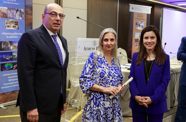(φωτό άρθρου): Η απονομή του βραβείου στον κ. Στουπάκη από την Υφυπουργό Παιδείας κα Λυτρίβη. Από δεξιά ο Γενικός Διευθυντής του Συνδέσμου Μεταλλευτικών Επιχειρήσεων κ. Χ. Καβαλόπουλος και ο Πρόεδρος του ΔΣ του Συνδέσμου κ. Κ. Γιαζιτζόγλου