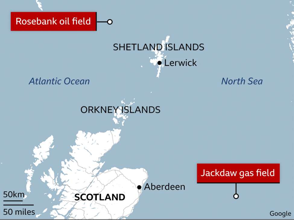 Τα κοιτάσματα Rosebank και Jackdaw στη Βόρεια Θάλασσα. Πηγή: BBC.