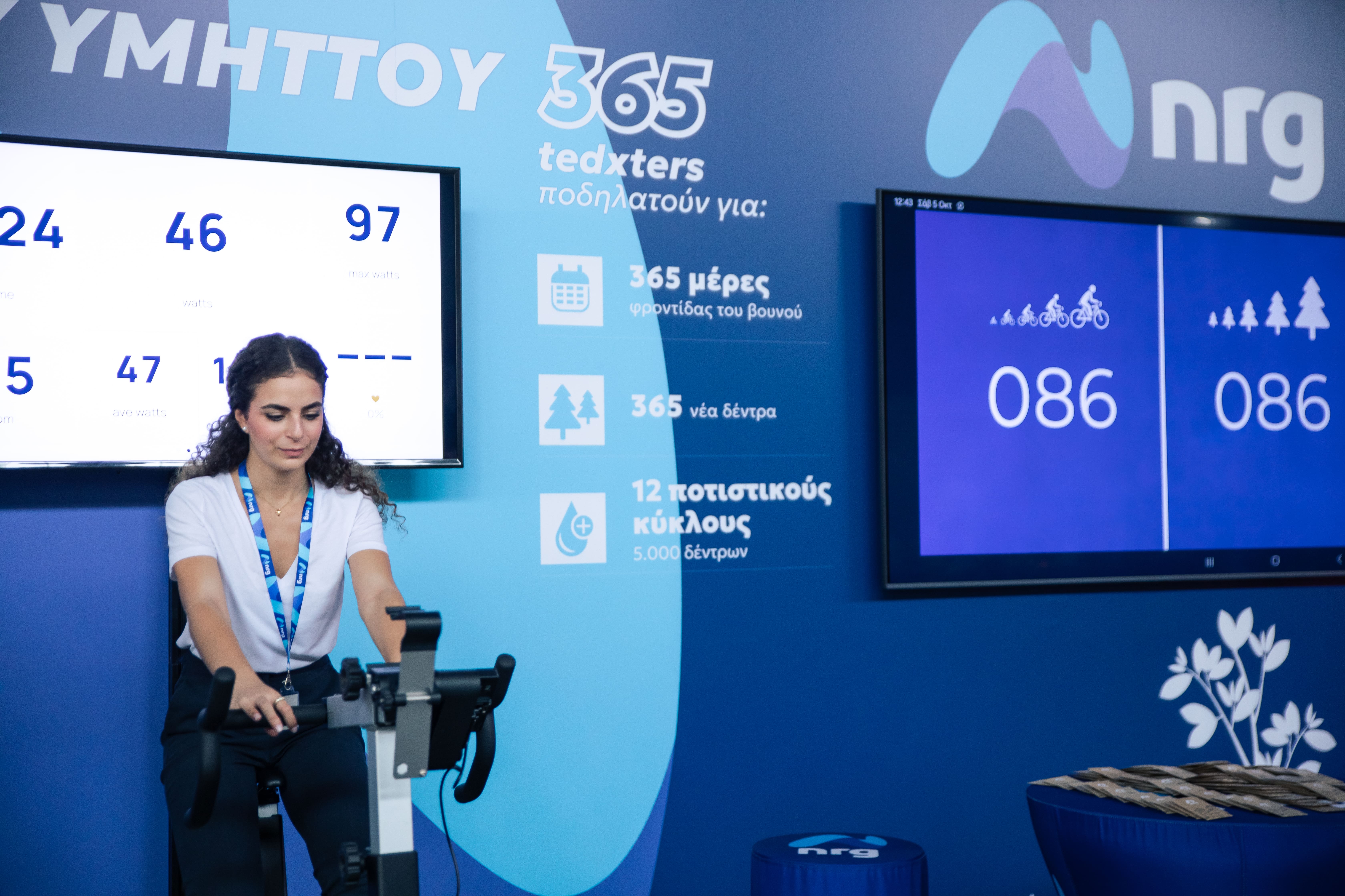 Απόλυτα εναρμονισμένη με το φετινό θέμα του TedxAthens ήταν και η nrg, θυγατρική του Ομίλου, πιστή στη δέσμευσή της στην προώθηση δράσεων για ένα μέλλον γεμάτο ενέργεια και καινοτομία. Οι επισκέπτες της φετινής διοργάνωσης είχαν την ευκαιρία να βοηθήσουν για το κοινό καλό διασκεδάζοντας! Σε ένα ειδικό διαμορφωμένο χώρο, μπορούσαν να κάνουν ποδήλατο ενώ ταυτόχρονα παρήγαγαν ενέργεια, η οποία θα βοηθήσει στην ανάπλαση του Υμηττού. Πιο συγκεκριμένα, σε συνεργασία με την Ομάδα του Let’s do it Greece και τον Σύνδεσμο Προστασίας και Ανάπτυξης Υμηττού (ΣΠΑΥ), η nrg θα αναλάβει τη φροντίδα του Υμηττού για έναν ολόκληρο χρόνο, φυτεύοντας 365 δέντρα, καλύπτοντας 12 κύκλους ποτισμάτων για 5.000 δέντρα και οργανώνοντας δράσεις για τον καθαρισμό του βουνού.