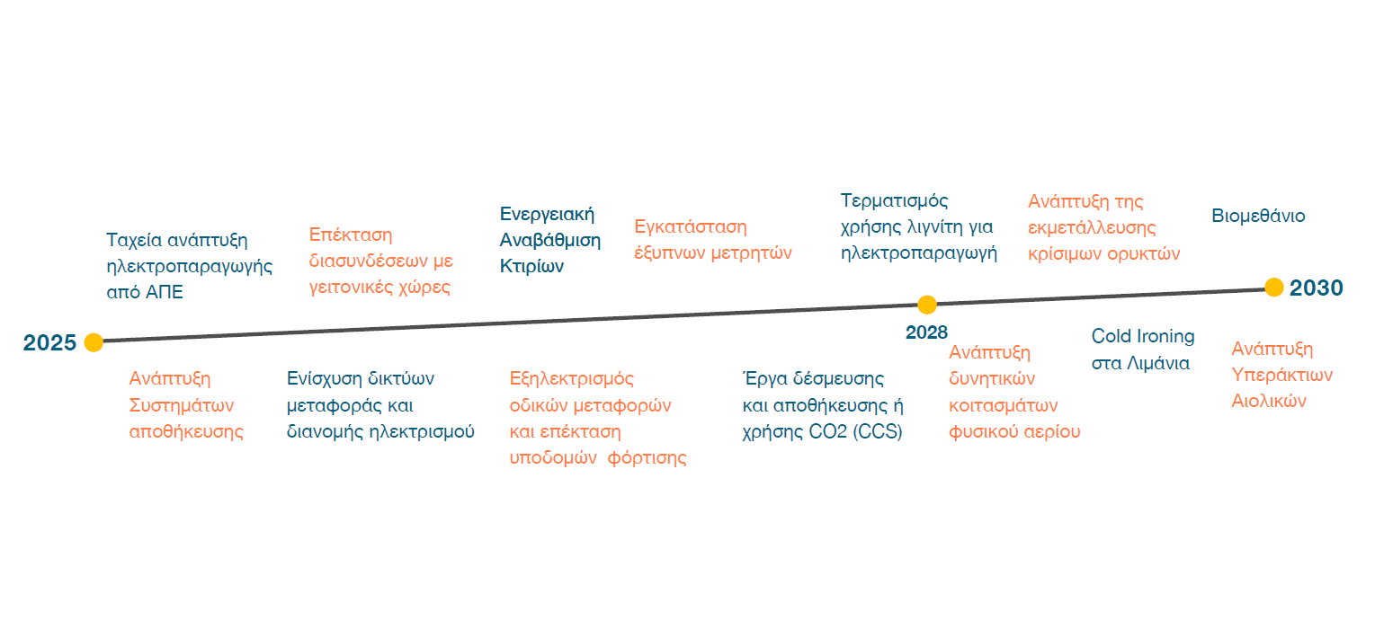 που θα εφαρμοστούν τα επόμενα χρόνια. Αρχικά, το ΕΣΕΚ - το οποίο θα διαμορφώσει την ενεργειακή στρατηγική της Ελλάδας για τις προσεχείς δεκαετίες, φέρνοντας σημαντικές αλλαγές σε πολλούς τομείς της καθημερινότητάς μας - χωρίζεται σε τρεις χρονικές φάσεις: 2025-2030, 2031-2040, και 2041-2050, καθεμία από τις οποίες θα έχει διαφορετικές προτεραιότητες και στόχους.