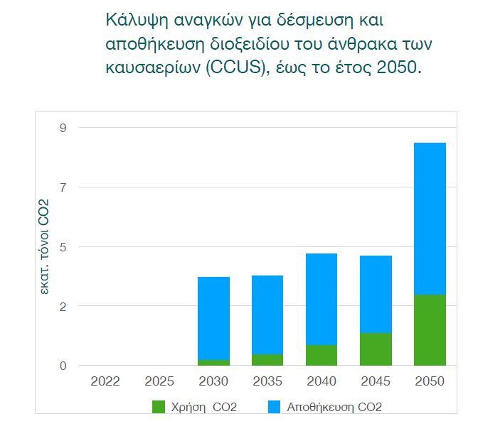 Η εξέλιξη της αποθήκευσης άνθρακα στην Ελλάδα. Πηγή: ΥΠΕΝ.