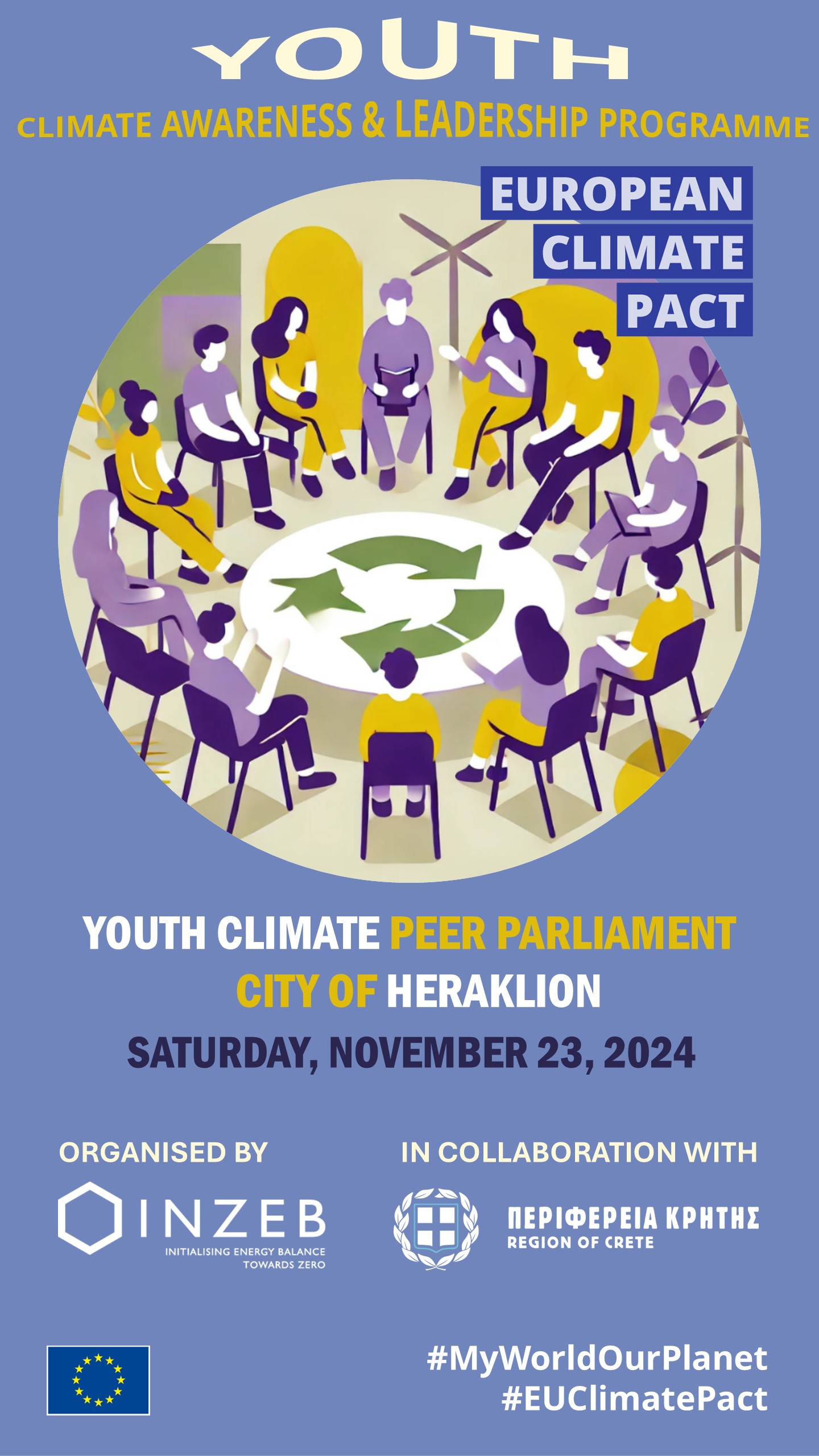 - Σάββατο 23 Νοεμβρίου, Κλιματικές Συζητήσεις Νέων στο 3ο Γενικό Λύκειο Ηρακλείου: Πρόκειται για ένα διαδραστικό φόρουμ, που θα αποτελέσει την πλατφόρμα μέσω της οποίας οι νέοι θα διερευνήσουν τις κλιματικές προκλήσεις, θα σχεδιάσουν εφαρμόσιμες λύσεις και θα αναπτύξουν σχέδια για την υλοποίηση περιβαλλοντικών αλλαγών στα σχολεία τους, στις τοπικές κοινότητες και στην καθημερινή τους ζωή. Αυτή η πρωτοβουλία είναι μέρος μιας ευρύτερης προσπάθειας για την ενίσχυση της ηγεσίας των νέων σε θέματα δράσης για το κλίμα και βιωσιμότητας.