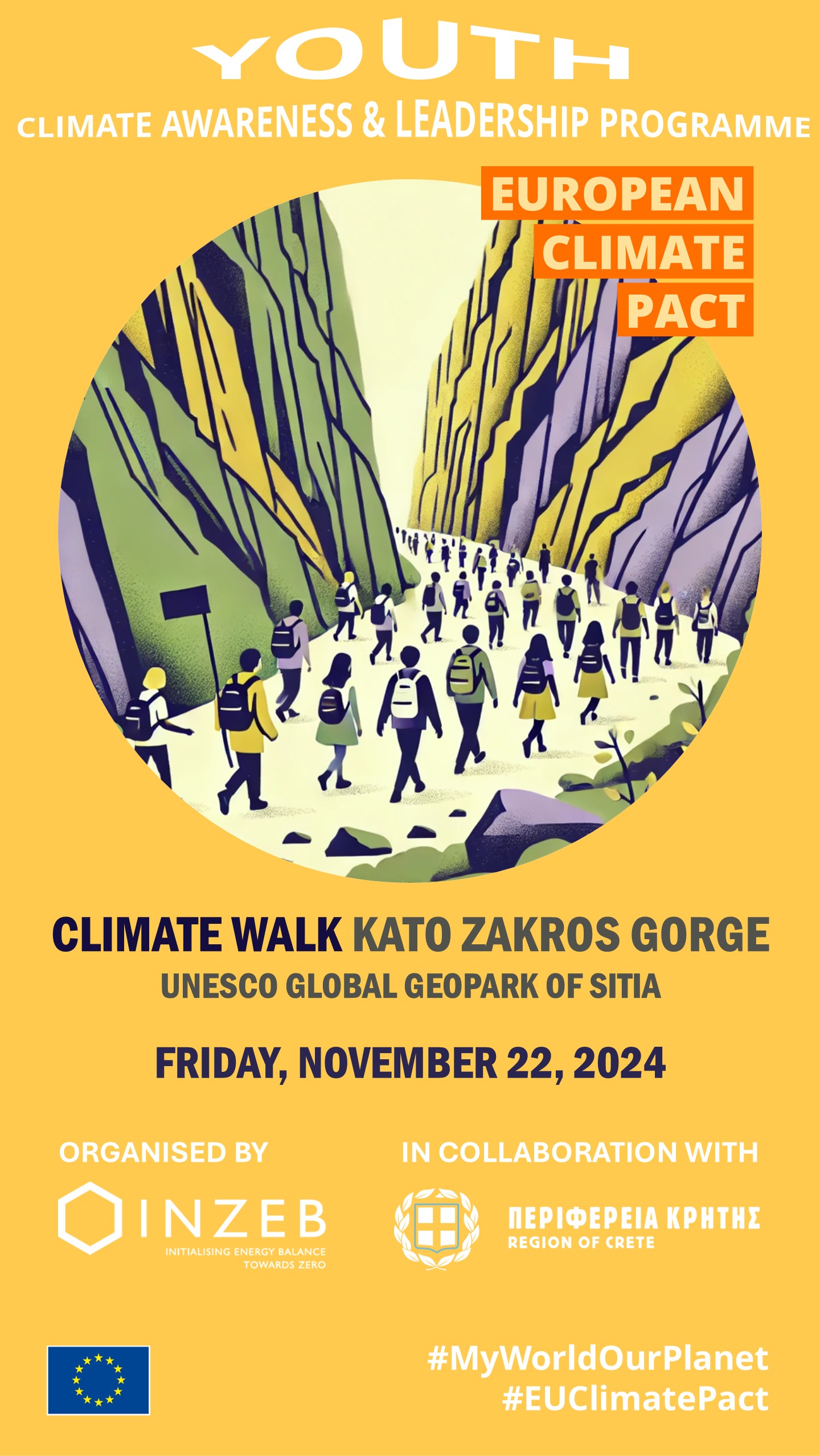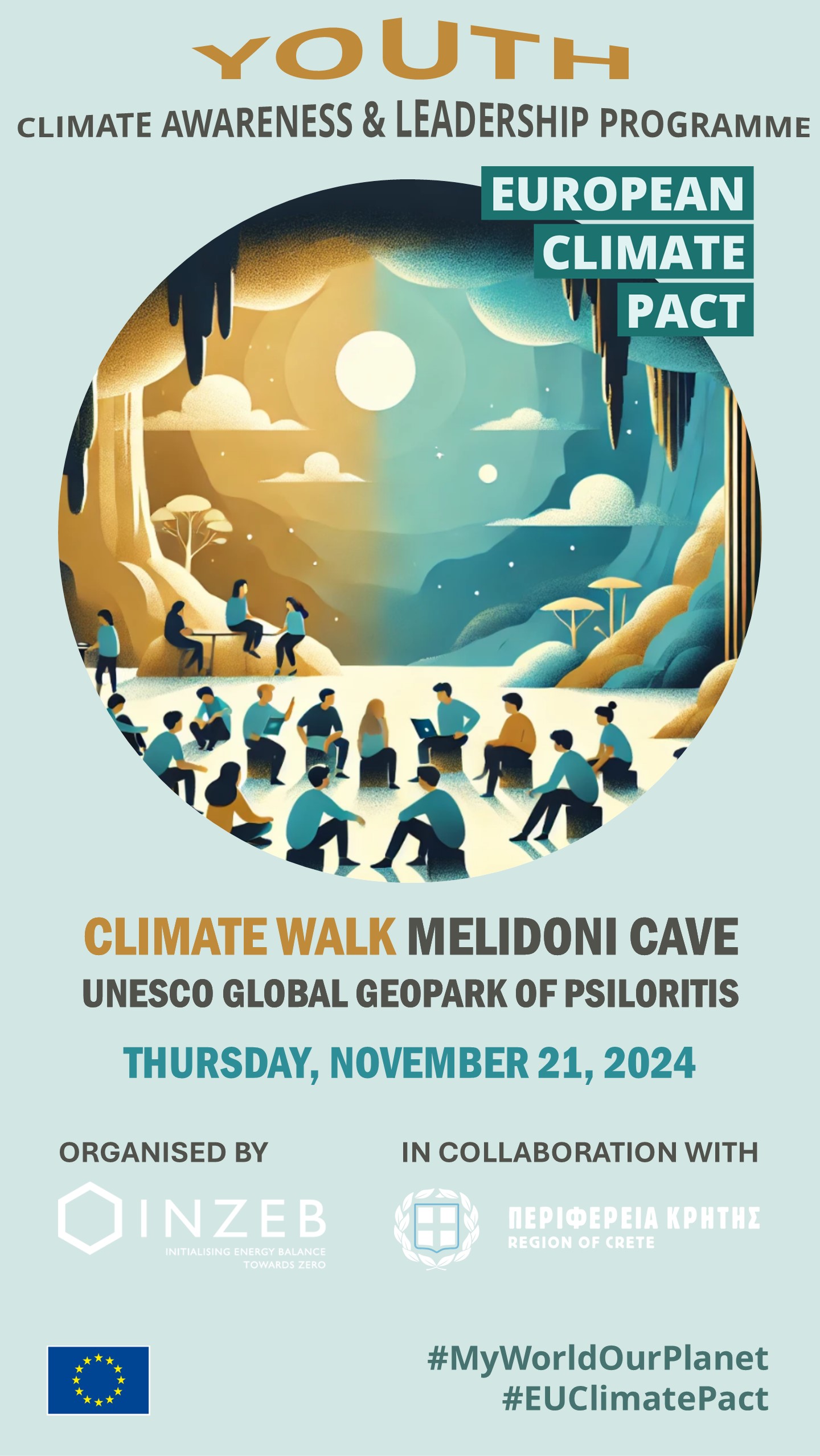 Οι δράσεις, οι οποίες συνδιοργανώνονται από τον Οργανισμό ΙΝΖΕΒ, Συντονιστή για το Ευρωπαϊκό Σύμφωνο για το Κλίμα στην Ελλάδα, και την Περιφέρεια Κρήτης, περιλαμβάνουν δύο Κλιματικούς Περιπάτους σε Γεώτοπους της UNESCO, και συγκεκριμένα στο Σπήλαιο Μελιδονίου του Παγκόσμιου Γεωπάρκου Ψηλορείτη, στο Ρέθυμνο και στο Φαράγγι Κάτω Ζάκρου του Παγκόσμιου Γεωπάρκου Σητείας, καθώς και δύο Κλιματικές Συζητήσεις Νέων, στο Ηράκλειο και στα Χανιά.