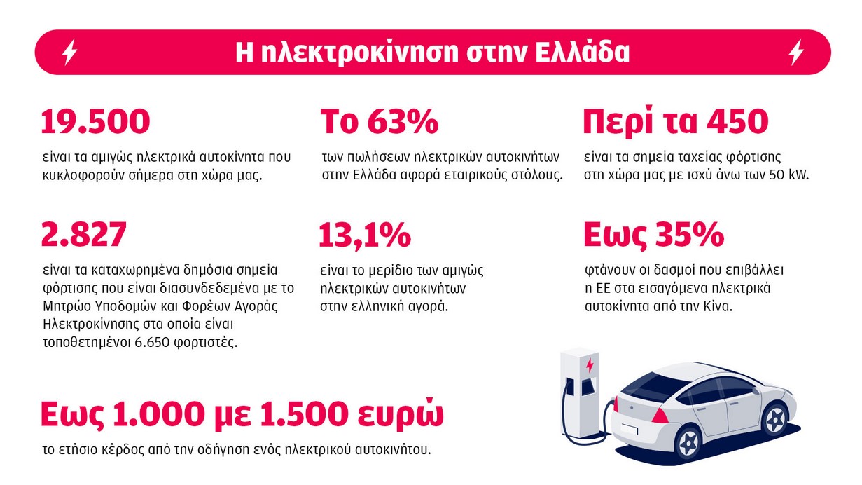 Η απόφαση, που δεν αφορά μόνο τις κινεζικές μάρκες, αλλά και τα ηλεκτρικά μοντέλα των υπόλοιπων αυτοκινητοβιομηχανιών τα οποία κατασκευάζονται στην Κίνα, έχει στόχο να προστατεύσει τις ευρωπαϊκές εταιρείες από τον αθέμιτο ανταγωνισμό, καθώς οι Κινέζοι ανταγωνιστές τους φέρονται να ωφελούνται από κρατικές επιδοτήσεις. Ωστόσο, η συγκεκριμένη εξέλιξη έχει προκαλέσει αντιδράσεις, με τη Γερμανία και άλλες χώρες να εκφράζουν ανησυχίες για τις πιθανές οικονομικές επιπτώσεις του μέτρου. Από εκεί και πέρα, είναι στη διακριτική ευχέρεια της κάθε εταιρείας να απορροφήσει αυτό το πρόστιμο, περιορίζοντας το ποσοστό του κέρδους της. Μέσα σε αυτό το θολό τοπίο είναι πραγματικά πολύ δύσκολο να κάνει κάποιος μια ασφαλή πρόγνωση για το πώς θα εξελιχθούν οι πωλήσεις ηλεκτρικών αυτοκινήτων στη χώρα μας την επόμενη χρονιά. Σε κάθε περίπτωση, το μερίδιο των ηλεκτρικών στην Ελλάδα παραμένει στο ένα τρίτο του ευρωπαϊκού μέσου όρου, οπότε και υπό κανονικές συνθήκες αναμένεται η συγκεκριμένη κατηγορία να συνεχίσει να αυξάνει τη διείσδυσή της. Αυτό, βέβαια, όσο τρέχει το κυβερνητικό πρόγραμμα επιδότησης για τα ηλεκτρικά οχήματα. «Αν τυχόν κοπεί, θα αποτελέσει την ταφόπλακα των ηλεκτρικών αυτοκινήτων στην Ελλάδα», ανέφερε εμφατικά στέλεχος της αγοράς.