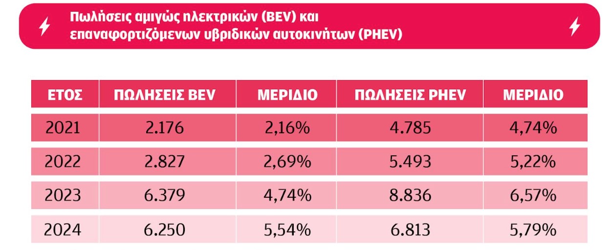 Αυτό δεν οφείλεται μόνο στην ενισχυμένη ελληνική αγορά αυτοκινήτου, καθώς στα τελευταία αυτά τρία χρόνια έχει ανέλθει και το μερίδιο των ηλεκτρικών επί του συνόλου των ταξινομήσεων, από το 2,16% στο 5,54%.