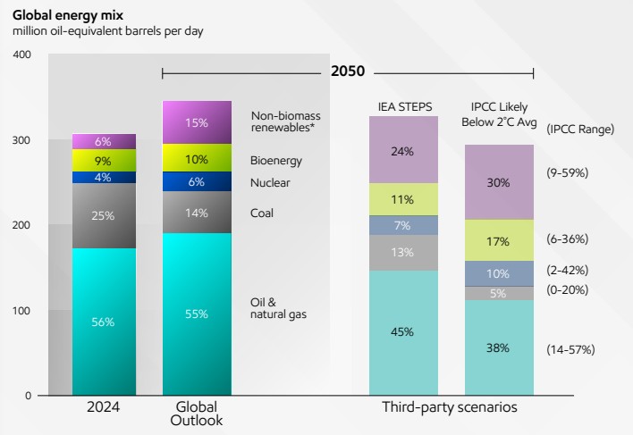 Εικόνα 4. Εκτιμήσεις του ενεργειακού μείγματος το 2050 από ExxonMobil, IEA και IPCC.