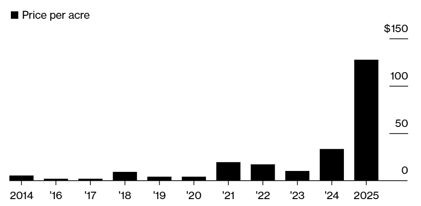 Οι μέσοι όροι των τιμών ομοσπονδιακής γης στις δημοπρασίες για γεωθερμικές εξορύξεις. Πηγή: Bloomberg.