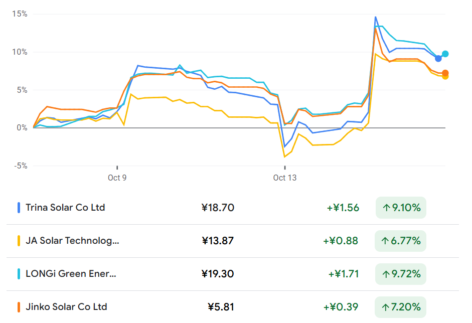 Οι μετοχές των κατασκευαστών φωτοβολταϊκών σημείωσαν άνοδο νωρίτερα σήμερα.